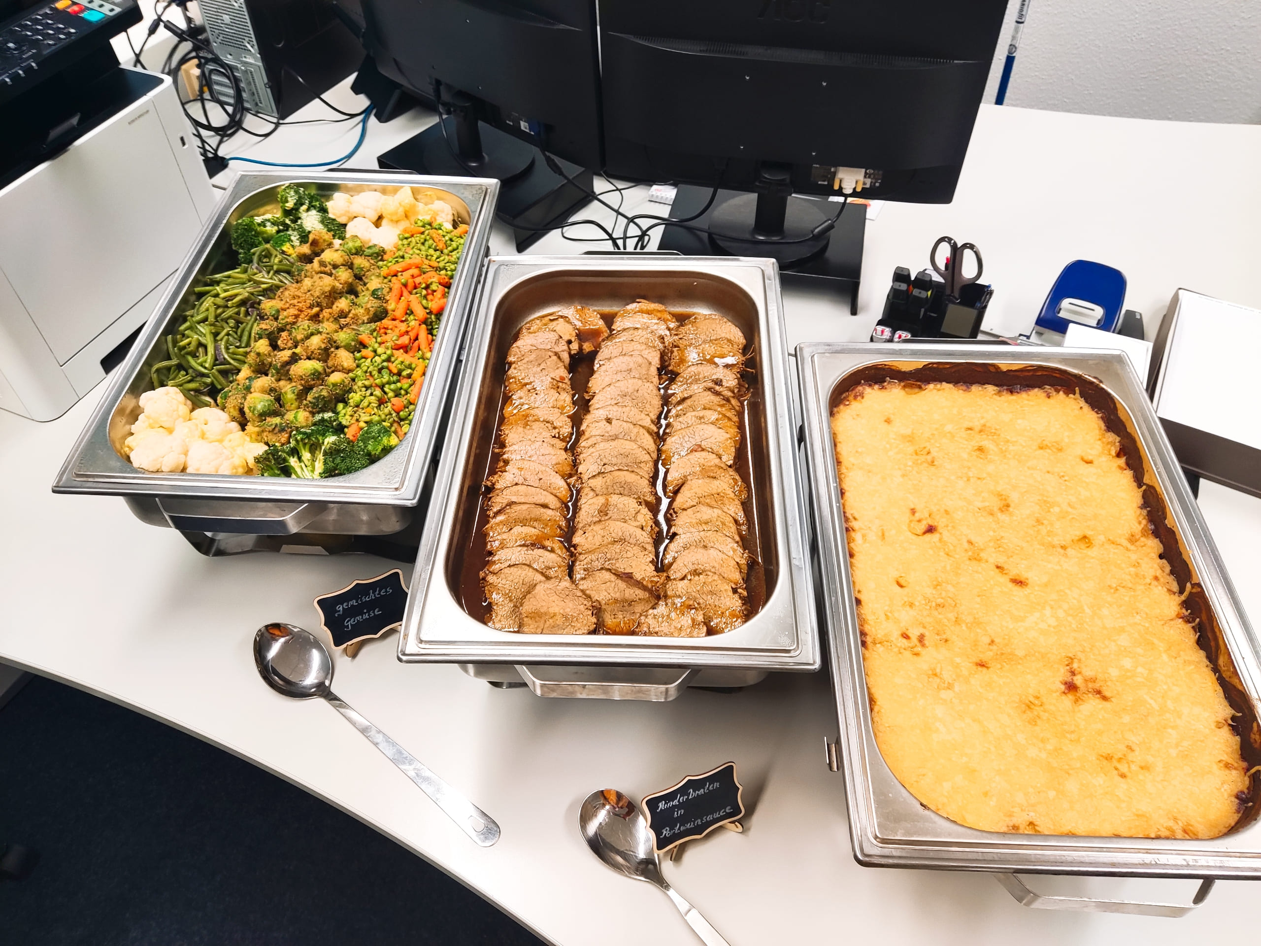 Stellen Sie Ihr individuelles warmes Buffet mit Klein Catering zusammen. Ob private Feiern, geschäftliche Veranstaltungen oder besondere Anlässe – wir beraten Sie gerne und sorgen dafür, dass Ihre Gäste rundum begeistert sind!